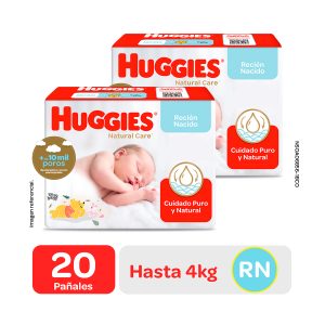 Pañal Huggies Recién Nacido Natural Care. Bolsa 20 Un – Duopack