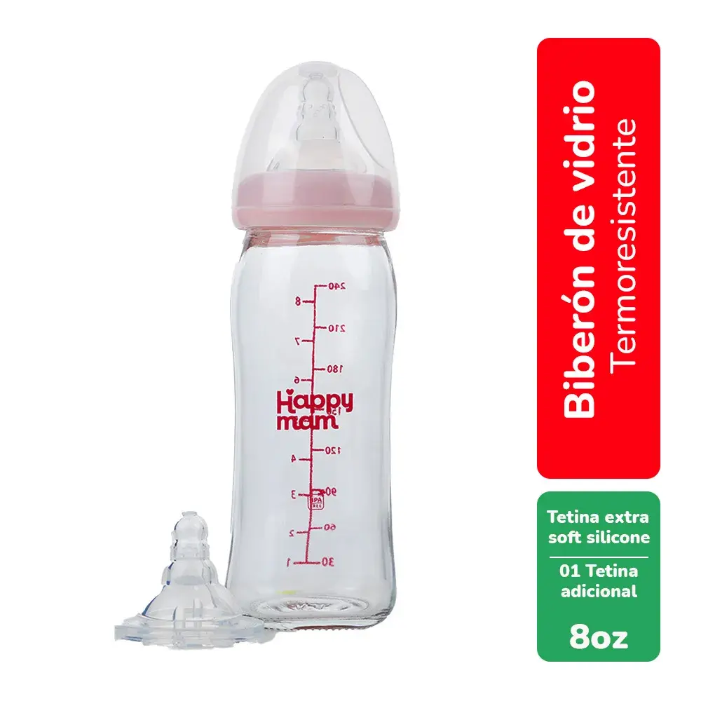 Biberón de Vidrio HappyMam Rosado – Frasco 80 Onz