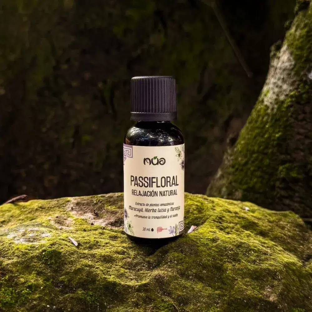 Extracto macerado nutracéutico a base de hojas de Maracuyá, Hierba Luisa y Naranja amarga. Formulación tradicional que puede integrarse como apoyo natural para la calma y el bienestar emocional. Puede contribuir a mantener la calma en momentos de tensión leve. Apoya la relajación y el descanso nocturno como complemento. Favorece la sensación de bienestar general. Contiene compuestos vegetales con actividad antioxidante. Elaborado con ingredientes cultivados y cosechados por comunidades amazónicas. Su formato líquido con gotero interno permite una fácil dosificación y mezcla con agua o infusiones. Producto peruano elaborado sin aditivos ni conservantes artificiales, apto para veganos.