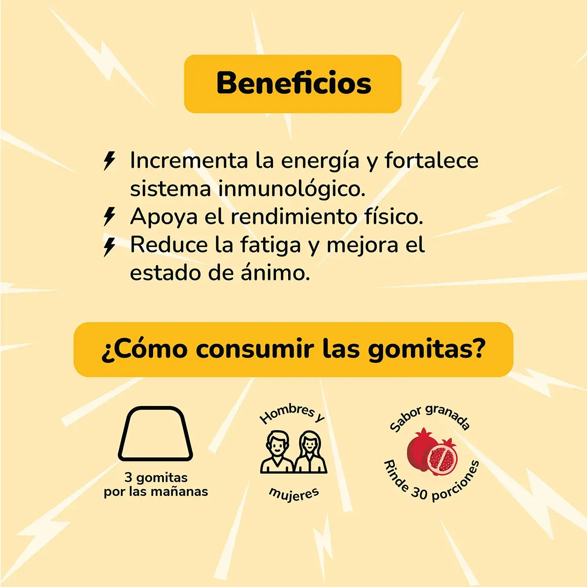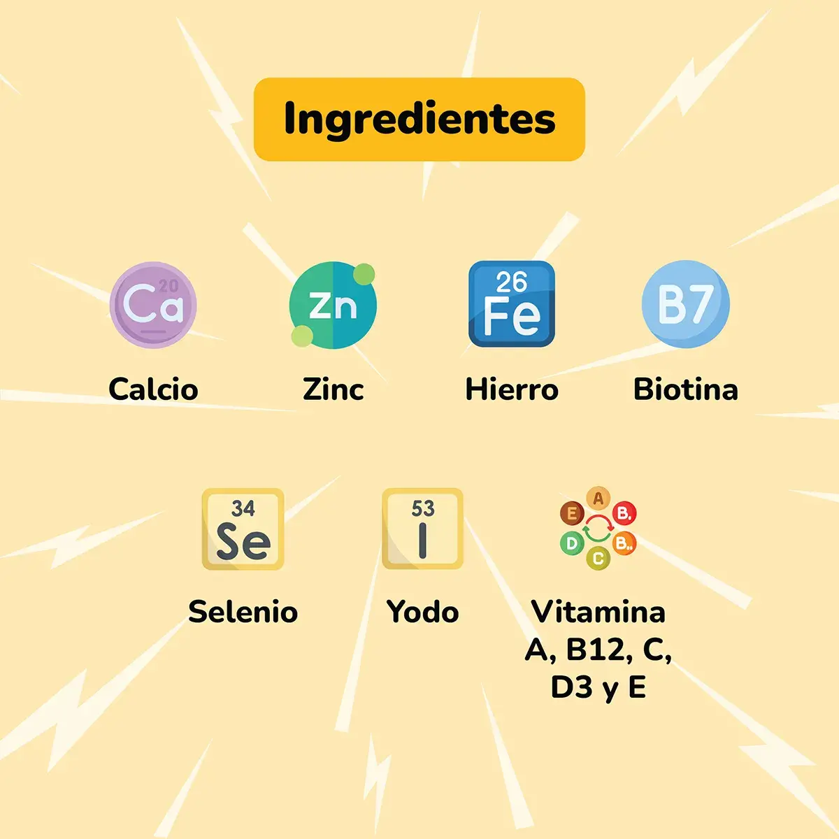 Gomitas Con Vitaminas A, B12, C, D3, E, Biotina, Calcio, Selenio, Yodo Y Zinc, Sabor Frutos Rojos, Sin Azúcar