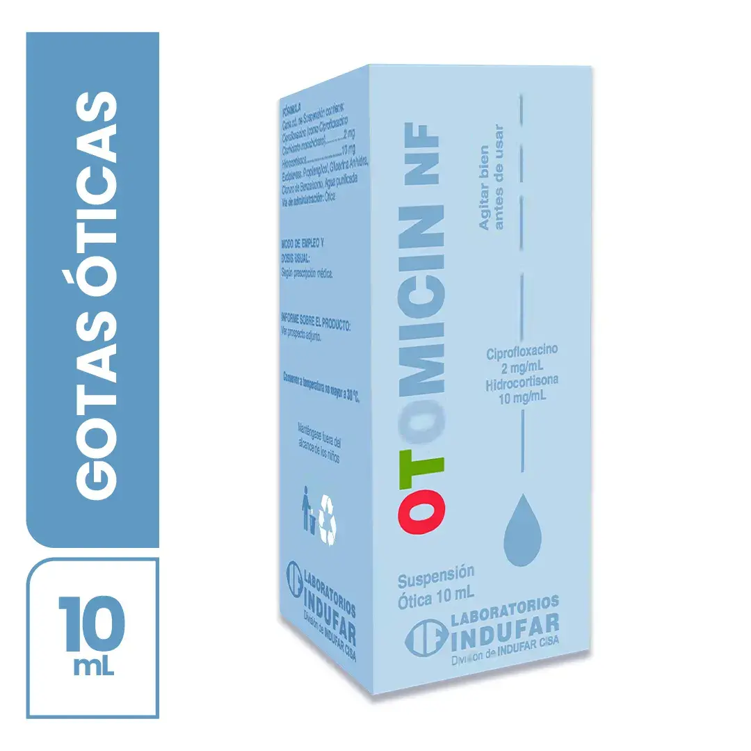 Se han notificado reacciones de hipersensibilidad (anafilácticas) graves y ocasionalmente fatales, algunas después de la primera dosis, en pacientes que reciben quinolonas sistémicas. OTOMICIN NF Suspensión Ótica debe ser descontinuado a la primera aparición de algún signo local o general de hipersensibilidad. OTOMICIN NF Suspensión Ótica no está indicado para uso oftálmico. Al igual que con otras preparaciones de antibióticos, el uso prolongado puede dar lugar a un crecimiento excesivo de organismos no susceptibles, incluidos los hongos. Si se produce una sobreinfección, se debe iniciar la terapia adecuada. Si la infección no mejora después de una semana, se deben realizar cultivos y pruebas de susceptibilidad para verificar la identidad del organismo y determinar qué terapia alternativa se debe iniciar