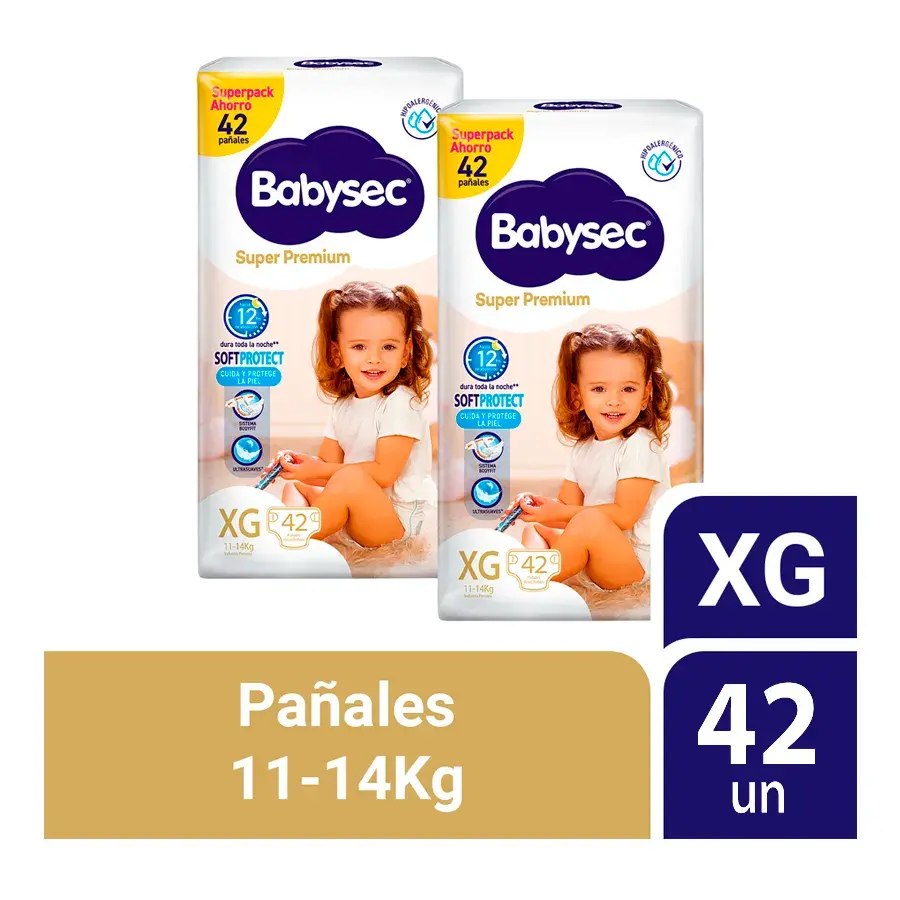 Pack 02 Pañales Babysec Super Premium Talla XG – Bolsa 42 Un