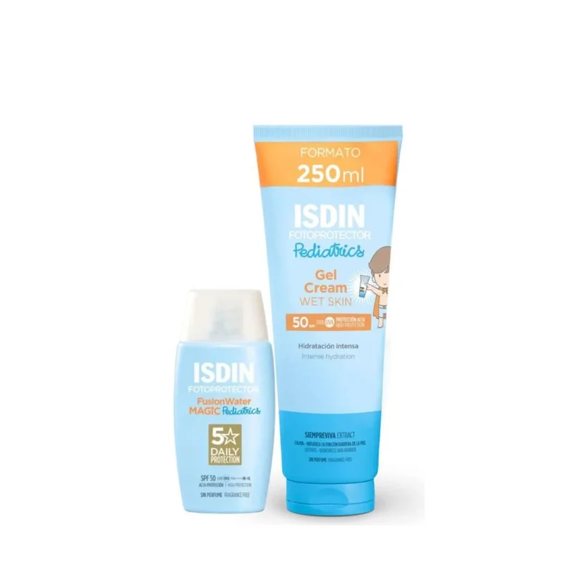 Pack Fotoprotector ISDIN: Fusion Water Magic Pediatrics SPF50 + Gel Cream Pediatrics SPF50