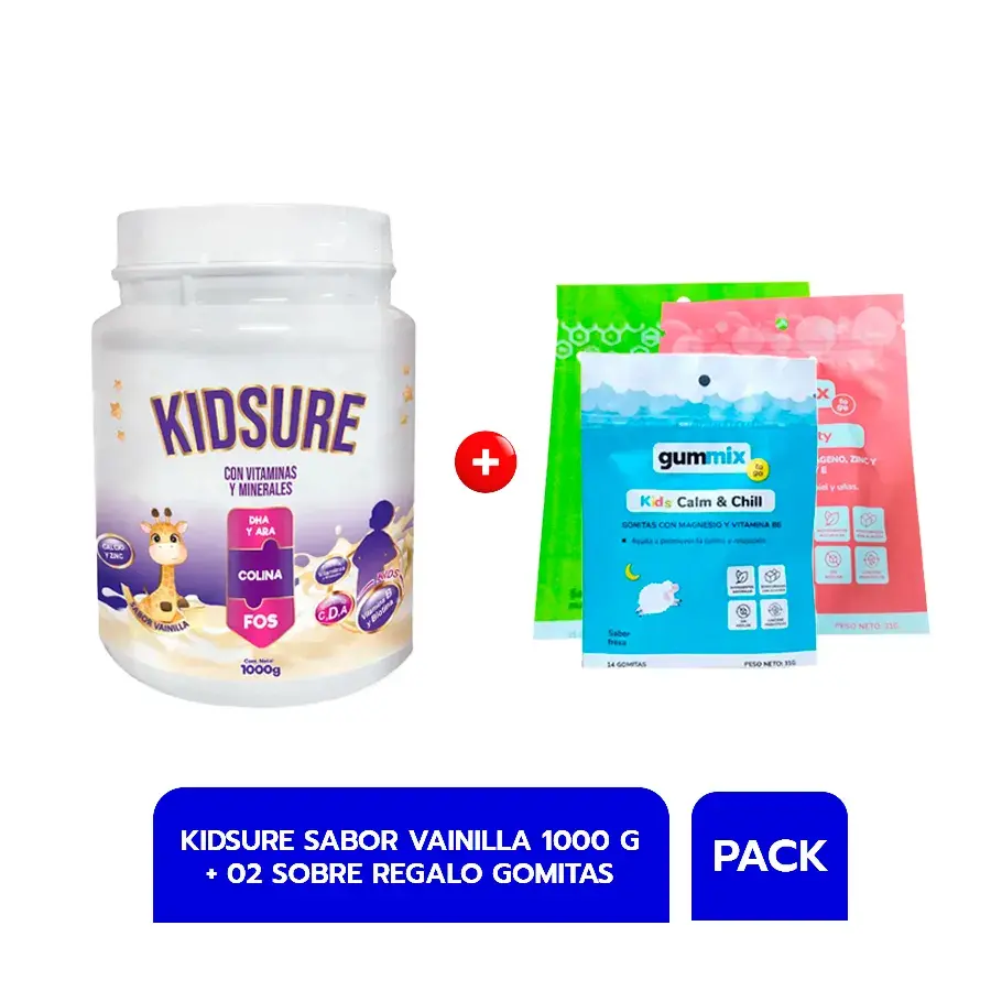 Pack Kisdure con DHA y ARA Sabor Vainilla Pote 1000 G + 02 Sobres Gomitas Gummix