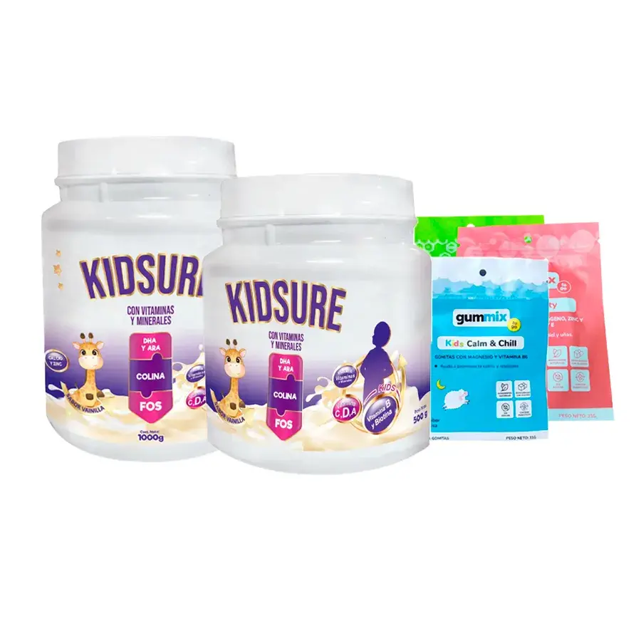 Pack Kisdure con DHA y ARA Sabor Vainilla Pote 1000 G + Kisdure con DHA y ARA Sabor Vainilla Pote 500 G + 03 Sobres Gomitas Gummix