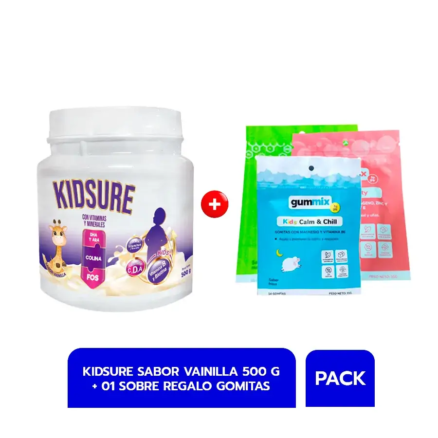 Pack Kisdure con DHA y ARA Sabor Vainilla Pote 500 G + 01 Sobre Gomitas Gummix