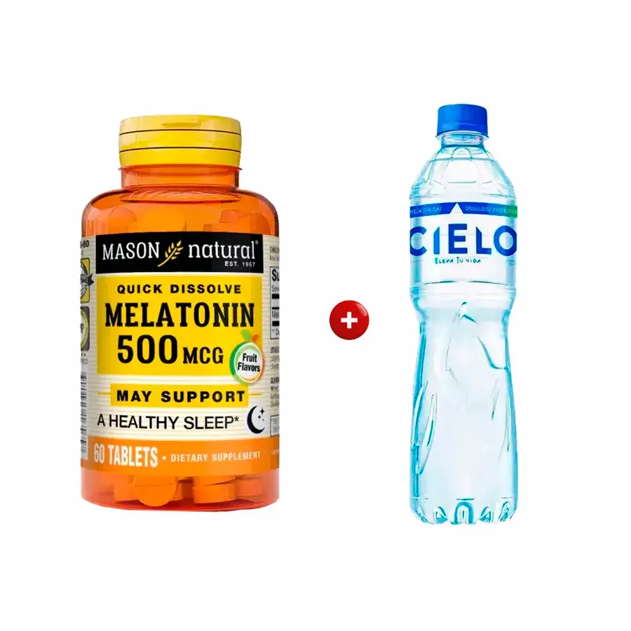 Pack Melatonin 500 MCG Mason Frasco 60 UN + Agua Cielo Botella 625 ML