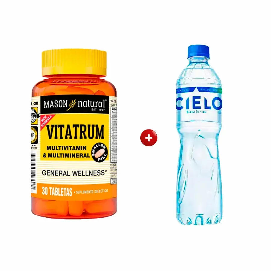 Pack Multivitamínico Vitatrum Mason Frasco 30 UN + Agua Cielo Botella 625 ML