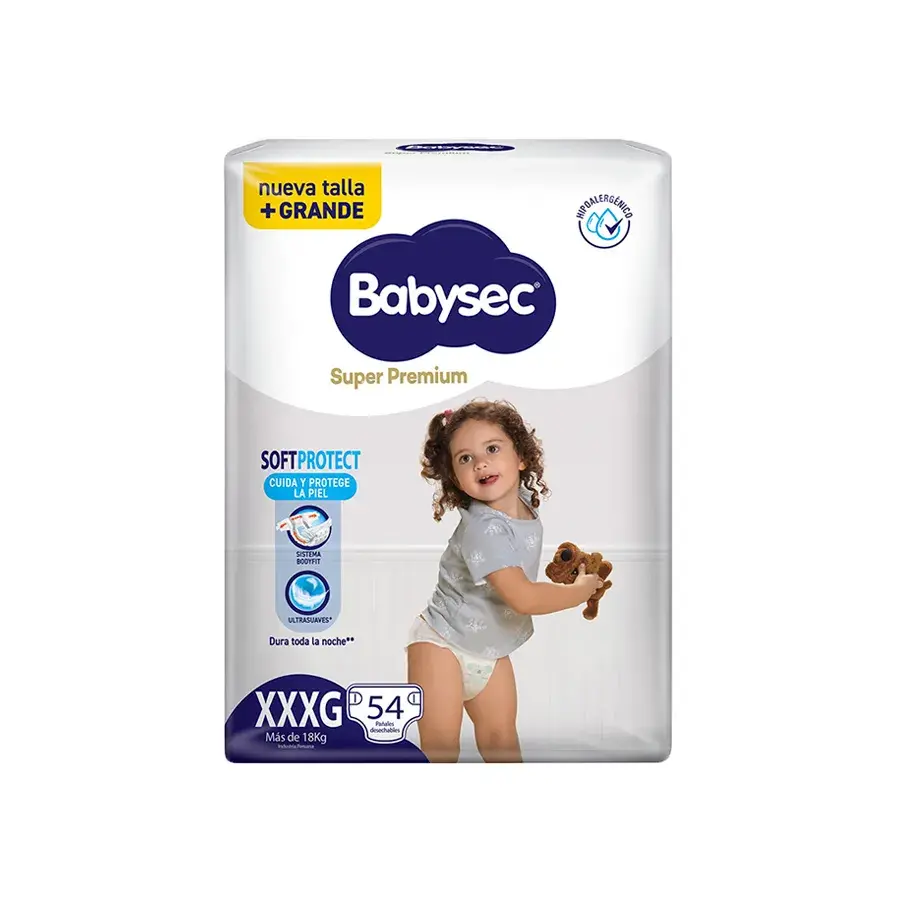 Pañal Babysec Super Premium Soft Protect Talla XXXG – Bolsa 54 UN