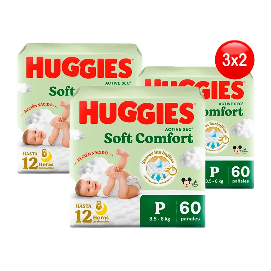 Pañal Huggies Active Sec Primeros Días Talla P Bolsa 60 UN – 3×2