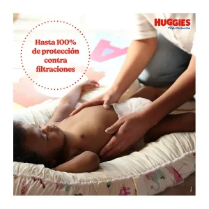 Pañales HUGGIES Triple protección con tecnología Xtra-Protect, con una capa especial para mayor sequedad para mantener a tu bebé sequito y tranquilo toda la noche.