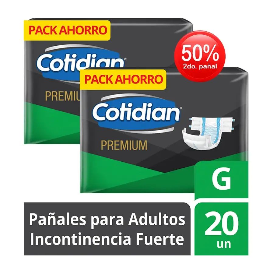 Pañales Cotidian Premium talla G. Bolsa x 20 Un – 2DO con 50% dscto.