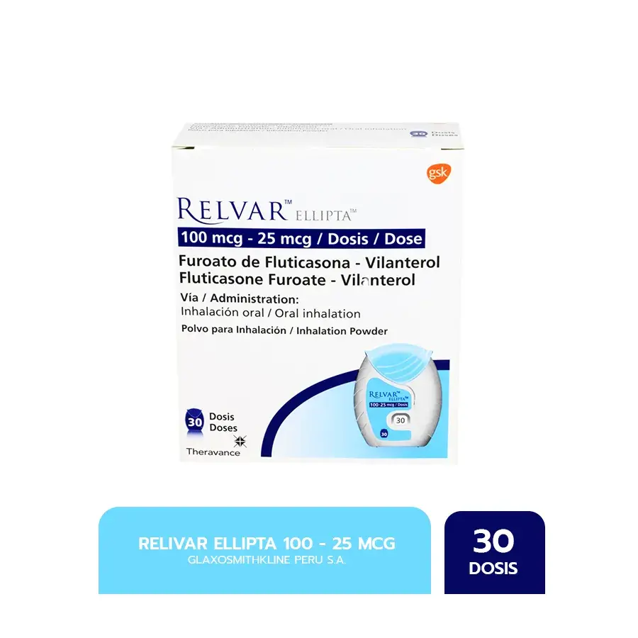 Tenga especial cuidado al usar RELVAR ELLIPTA: Consulte con su médico antes de empezar a usar RELVAR ELLIPTA: Si tiene problemas hepáticos, ya que puede ser más propenso a tener efectos adversos. Si tiene problemas hepáticos moderados o graves, su médico limitará su dosis a la concentración más baja de RELVAR ELLIPTA (100/25 mcg una vez al día). Si tiene problemas cardiacos o tensión arterial alta. Si tiene tuberculosis (TB) pulmonar o cualquier otra infección desde hace tiempo o que no haya sido tratada. Si tiene antecedentes de diabetes. Si tiene problemas de la glándula tiroides. Si tiene el potasio de la sangre bajo. Si presenta visión borrosa u otras alteraciones visuales. Consulte con su médico antes de utilizar este medicamento si piensa que cualquiera de las condiciones anteriores le aplican. Para mayor información. Leer Inserto.