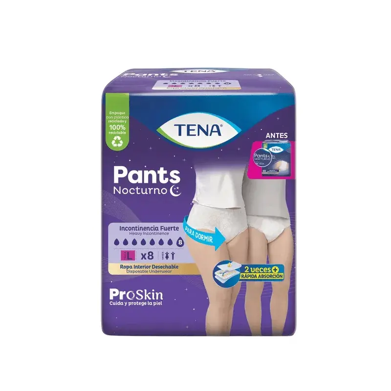 Ropa Interior Absorbente TENA Pants Nocturno Talla L – Paquete 8 UN