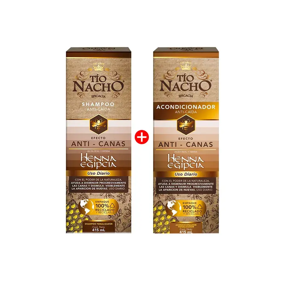 Con el paso de los años el cabello pierde melanina logrando la aparición de canas. Tío Nacho contiene una fórmula natural que matiza las canas para tener un cabello visiblemente con menos canas y menos caída. Actúa eficazmente sobre el cuero cabelludo, logrando menos canas visibles en 5 semanas. Ayuda a matizar progresivamente las canas indeseadas y disimula la aparición de nuevas. Ideal para cabello gris y sin brillo, contiene jalea real que hace que tu cabello se vea más brillante. Además, es de origen natural que ayudan a lucir un cabello más rejuvenecido.