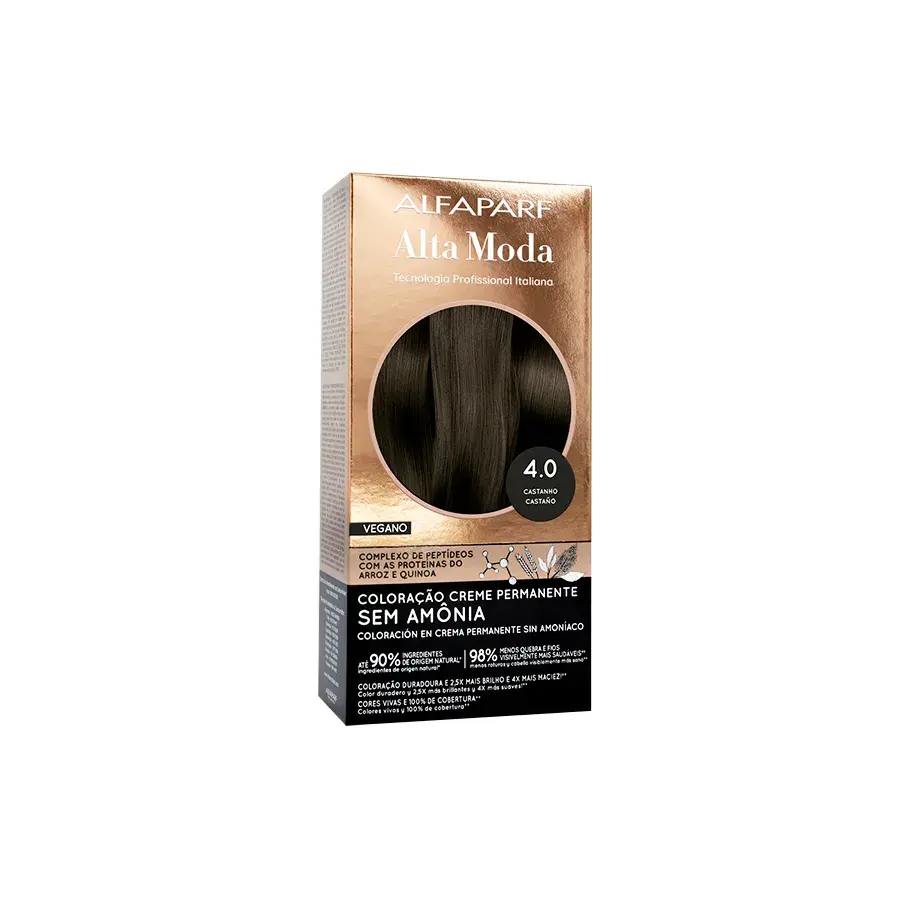Tintura Alta Moda Alfaparf En Kit Sin Amoniaco Tono 4.0 Castaño – Caja 1 UN