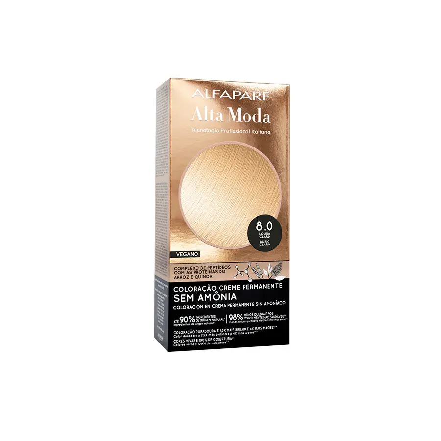 Tintura Alta Moda Alfaparf En Kit Sin Amoniaco Tono 8.0 Rubio claro