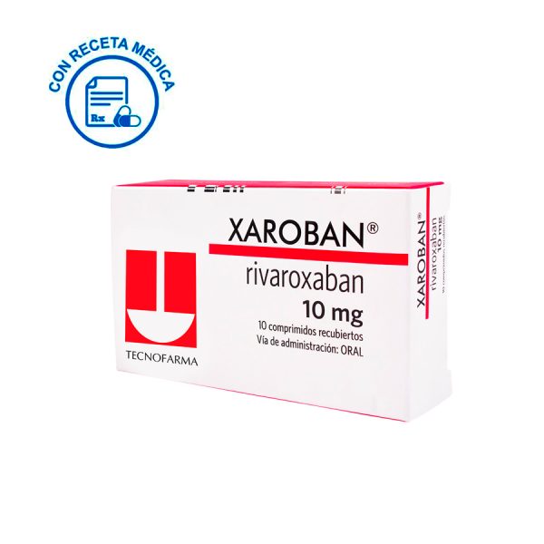 Xaroban 10 mg comprimidos recubiertos contiene rivaroxabán, un inhibidor directo del factor Xa que interrumpe la cascada de coagulación, reduciendo la formación de trombina y trombos. Está indicado para prevención de tromboembolismo venoso (TEV) tras cirugía electiva de cadera o rodilla, tratamiento de trombosis venosa profunda (TVP), embolia pulmonar (EP) y prevención de recurrencias, así como prevención de ictus y embolia sistémica en fibrilación auricular no valvular. Farmacias Medicity+3
